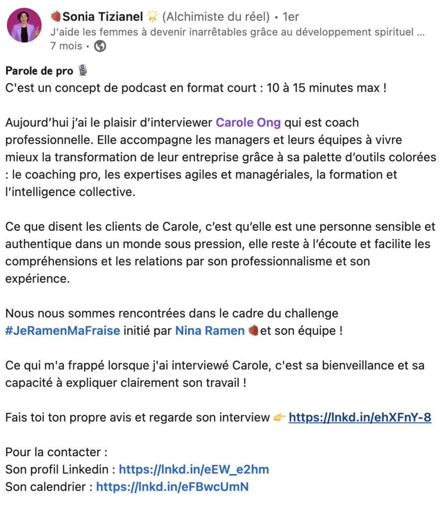 En plus de ses compétences reconnues par tous en matière de management et leadership ainsi que ses fortes connaissances et nombreuses expériences en agilité/SAFe, Carole a été pour moi une excellente marraine et coach pendant plus d’un an et demi.
